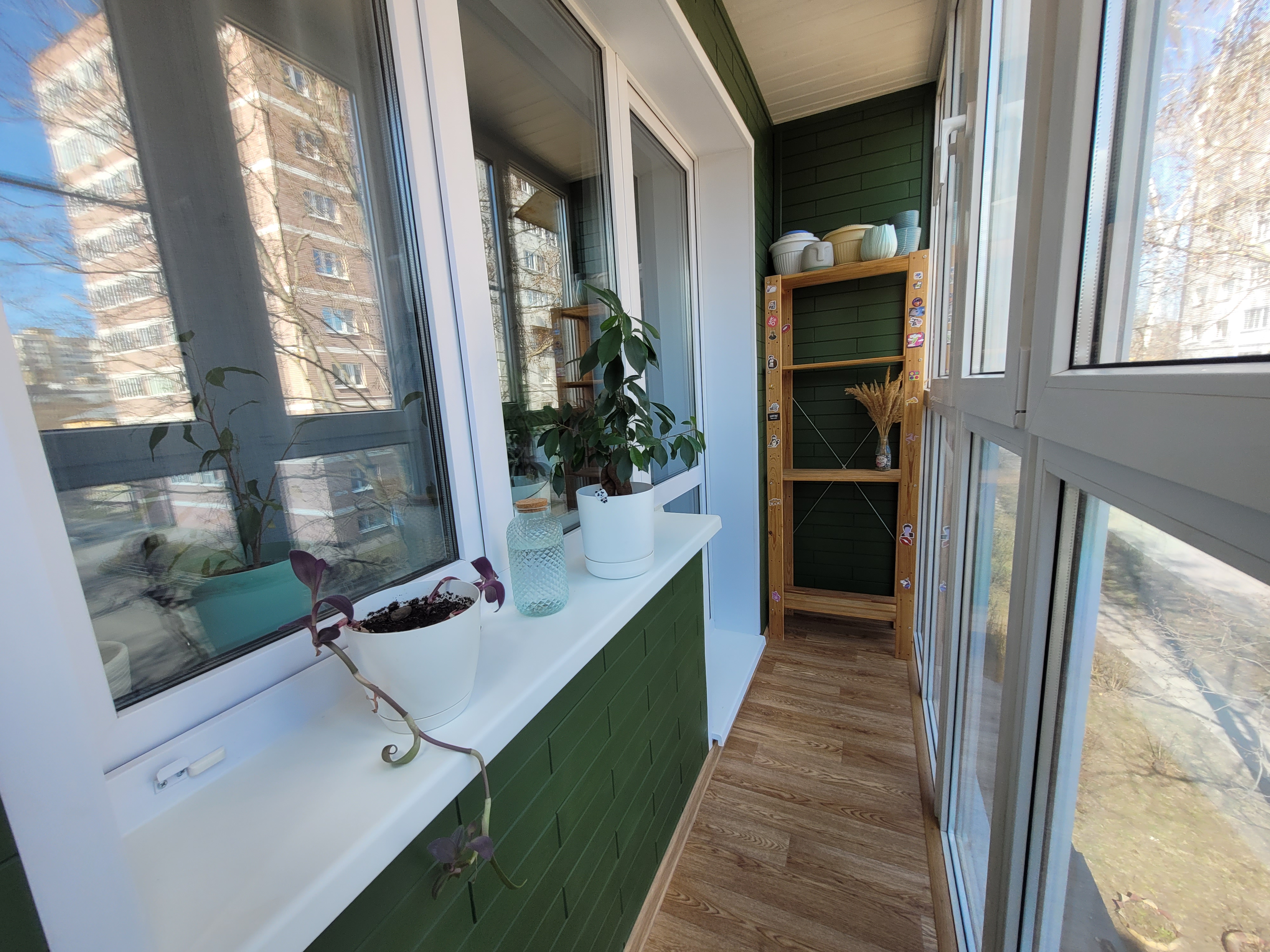 Лоджия для отдыха, сушки белья, хранения и мини-сад за окном🍅